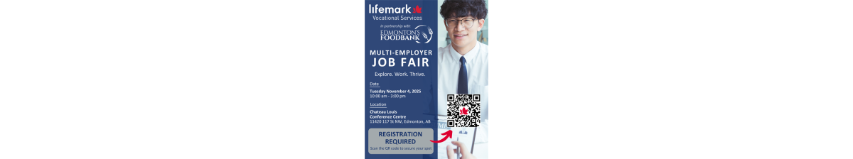 Lifemark Multi-Employer Job Fair (in collaboration with the Edmonton Food Bank) on Nov 04, 2025.
